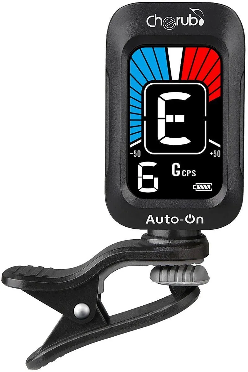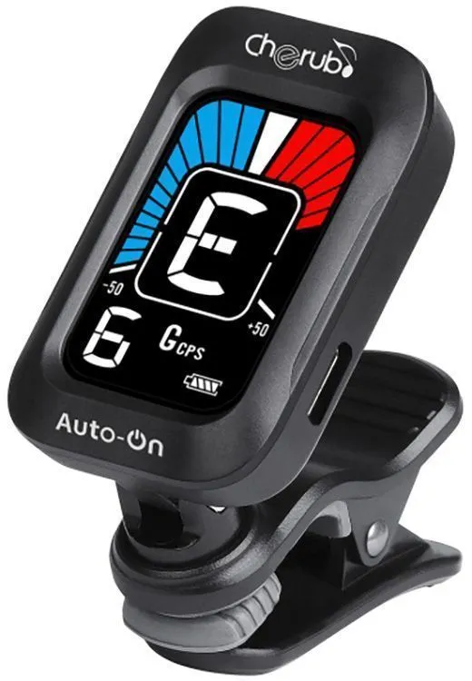 Cherub WST-645 — это простой в использовании тюнер на прищепке с функцией автоматического включения, который был первоначально изобретен компанией Cherub в 2013 году. Просто поверните тюнер вверх, чтобы включить его, и вниз, чтобы выключить. Вы можете оставить его на головке грифа и настроить свой инструмент самым простым способом.