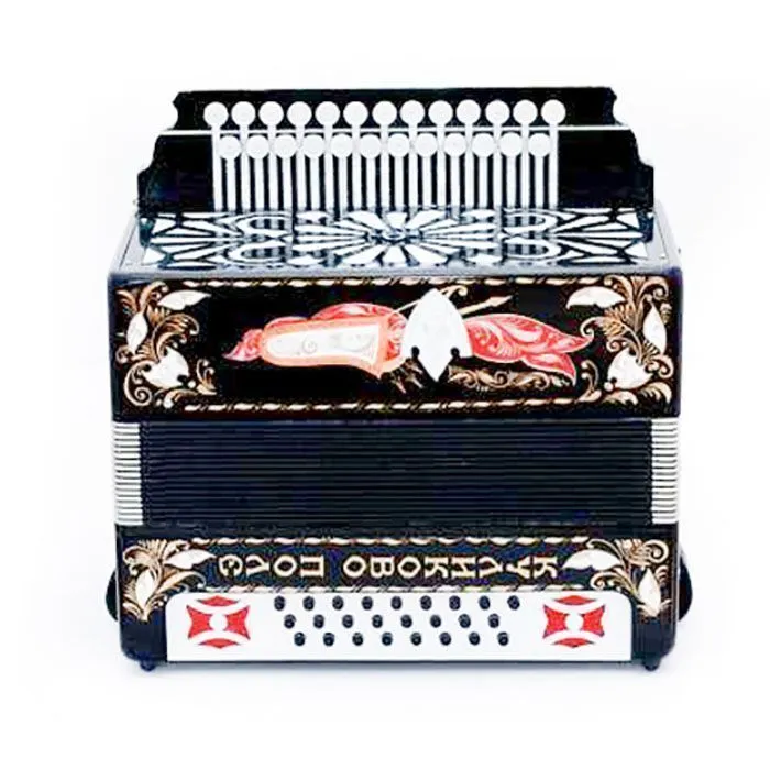 Правый клавиатурный механизм выполнен по класическому типу заказных гармоней и имеет трехголосное звучание. В левой части: бас — пятиголосный с одновременным звучанием в пяти октавах, аккомпанемент — двухголосный с одновременным звучанием в двух октавах. Голосовые планки кусковые улучшенного качества ручной наклепки.